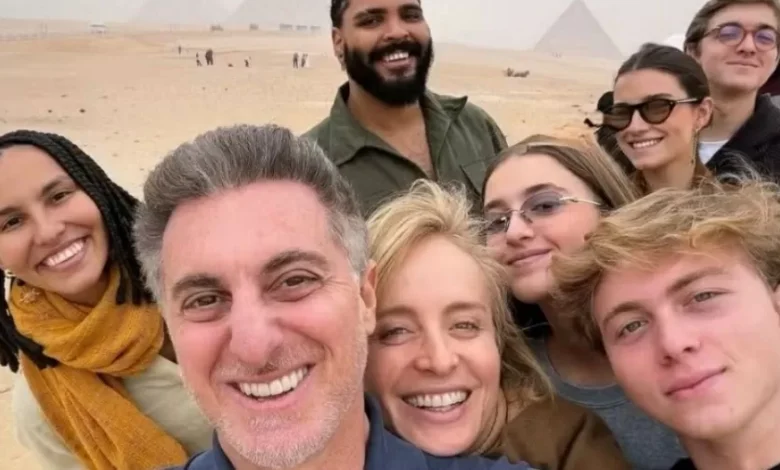 Angélica, 52, e Luciano Huck, 54, aproveitaram alguns dias de férias no Egito, acompanhados dos três filhos — Joaquim, 20, Benício, 18, e Eva, 13 — e de amigos próximos. Entre os convidados estava o humorista Paulo Vieira, que viajou com a namorada, Ilana.